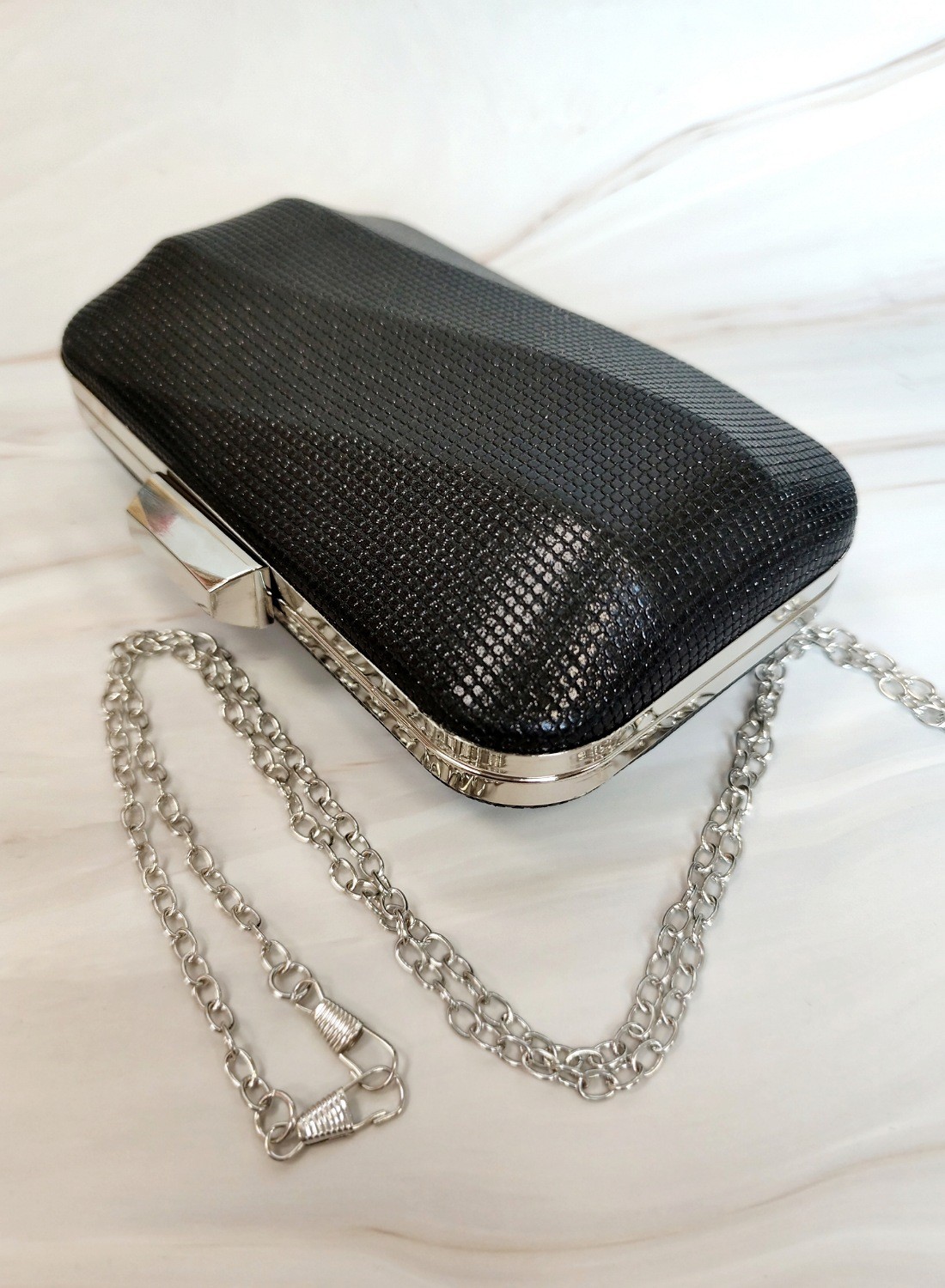 Estos elegantes bolsos con brillo y rígidos son el accesorio perfecto para agregar un toque de glamour a cualquier outfit. Disponibles en negro, dorado y plateado con borde metálico en dorado los tres colores, cuentan con un diseño moderno y sofisticado que los hace ideales para eventos formales y ocasiones especiales. Con espacio suficiente para llevar lo esencial, como tu teléfono, llaves y maquillaje, estos bolsos son prácticos y estilosos a la vez. Llevan una cadena para colgar de 118cm aproximadamente ¡Hazte con uno ahora y deslumbra a todos en tu próxima salida!